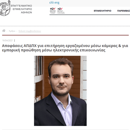 Αποφάσεις ΑΠΔΠΧ για επιτήρηση εργαζομένου μέσω κάμερας & για εμπορική προώθηση μέσω ηλεκτρονικής επικοινωνίας